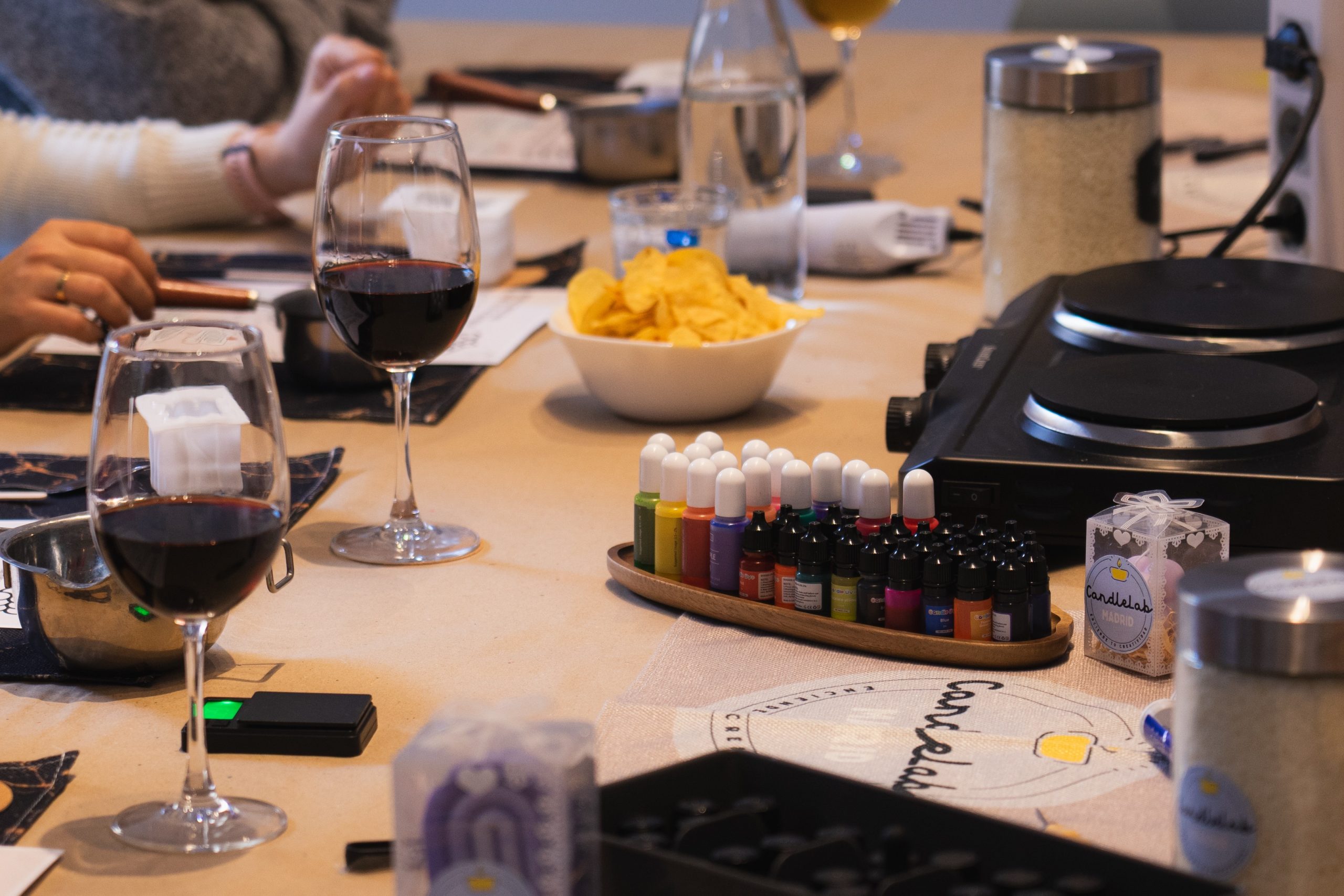Aprende a crear velas únicas con cera de soja 100% natural. Personaliza tu diseño eligiendo colores y aromas. Incluye consumiciones (cerveza/vermut ilimitado) y picoteo para disfrutar mientras creas.
